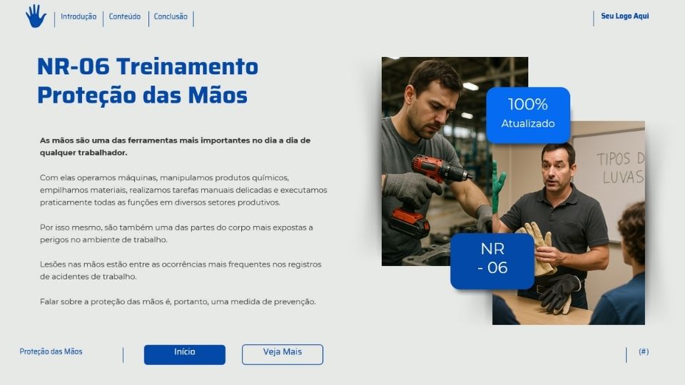 Em treinamentos internos, integrações e reciclagens (todas as NRs), SIPAT, aulas presenciais e online, consultorias e auditorias. Ideal para quem precisa padronizar conteúdo com qualidade e ganhar tempo no dia a dia.