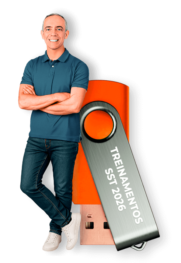 Por isso criei o Pendrive Treinamentos SST 2026! Apresentações prontas, atualizados e com design moderno e profissional! Para você entregar um trabalho de alto nível e ser reconhecido por isso.